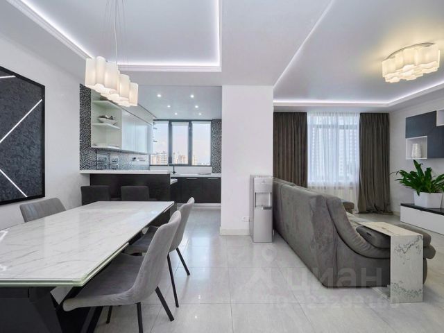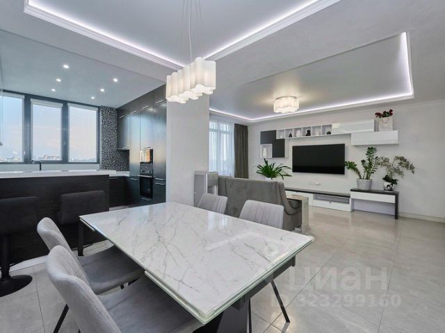 В продаже большая квартира 144,35 м2 с новым дизайнерским ремонтом в ЖК Тургенев, расположенном в самом престижном микрорайоне города Фестивальный (ФМР). Дом бизнес класса. Панарамное остекление. 22й этаж. Три изолированные спальни ! Прихожая 17,95 м2 Кухня-гостиная - 42,58 м2 Мастер-спальня - 18,13 м2 Душевая - 5,63 м2 Спальня детская - 21,6 м2 Гардеробная - 2,50 м2 Прачечная - 4,80 м2 Ванная - 5,04 м2 Спальня - 23,63 м2 Гардеробная - 2,50 м2 Закрытая приватная территория с видеонаблюдением и подсветкой комплекса. Просторный озелененный двор с детскими и спортивными площадками, территориями для отдыха, прогулочным бульваром с цветным фонтаном. Детский сад с бассейном и премиальные заведения на территории комплекса: салоны красоты, кафе и рестораны и т.д. Подземный паркинг с выходом к лифту и гостевые парковки. В каждом подъезде предусмотрены пассажирские и грузовые лифты, помещения для консьержа. Объект в ипотеке ВТБ. Продажа в связи с переездом. При покупке взимается комиссия агентства. Звоните, организую показ.