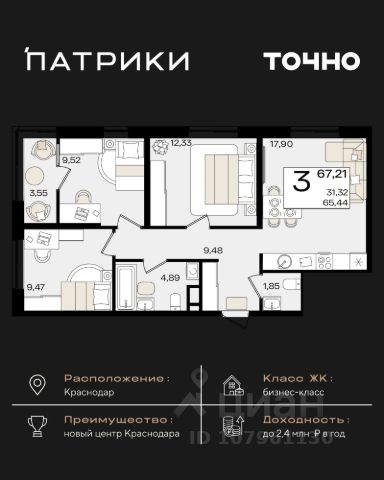 Купить 3-комнатную квартиру с дизайнерским ремонтом на улице Сормовская в городе Краснодар (от 10,7 млн руб.)