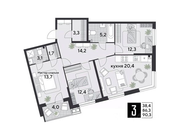 Купить 3-комнатную квартиру в рассрочку в микрорайоне Парк Победы в городе Краснодар