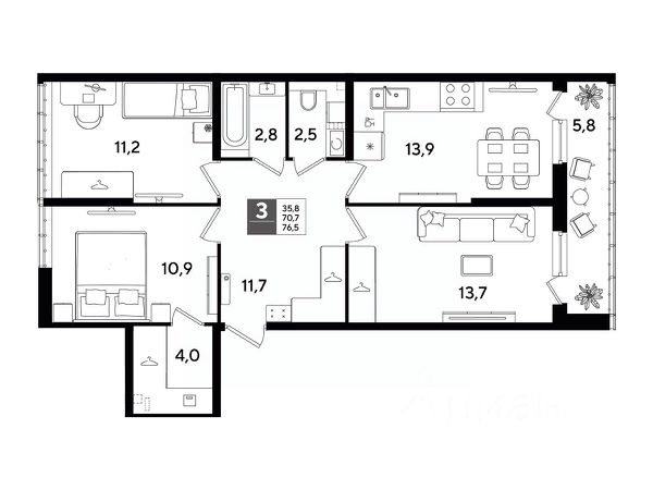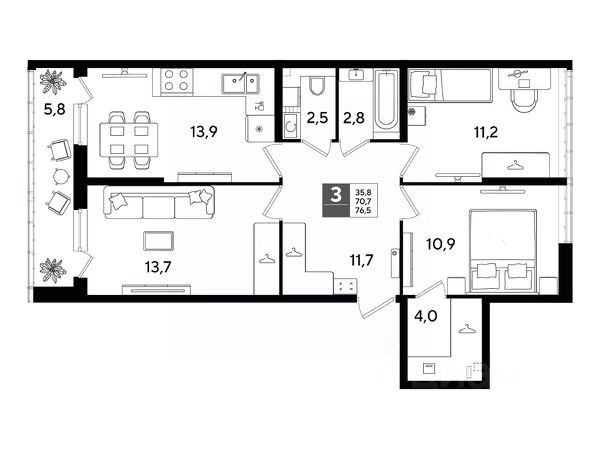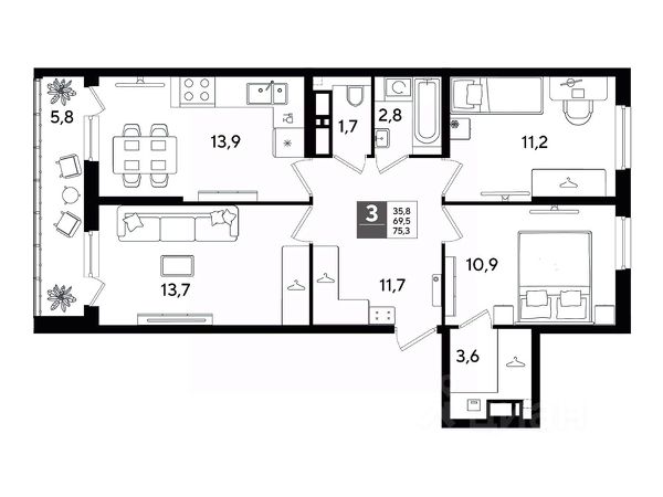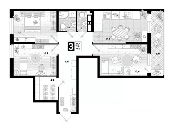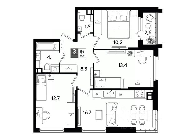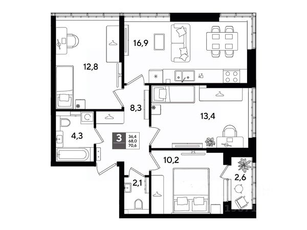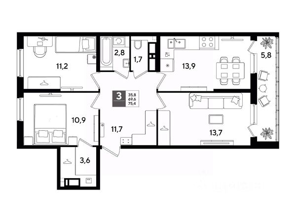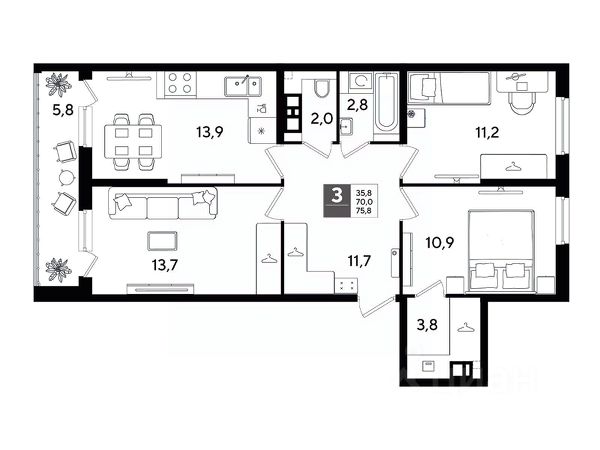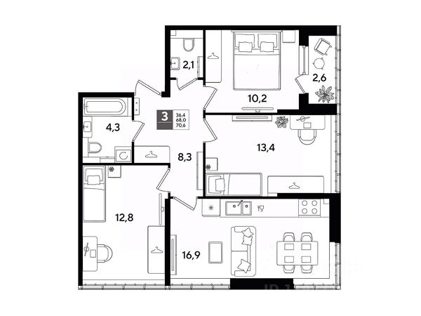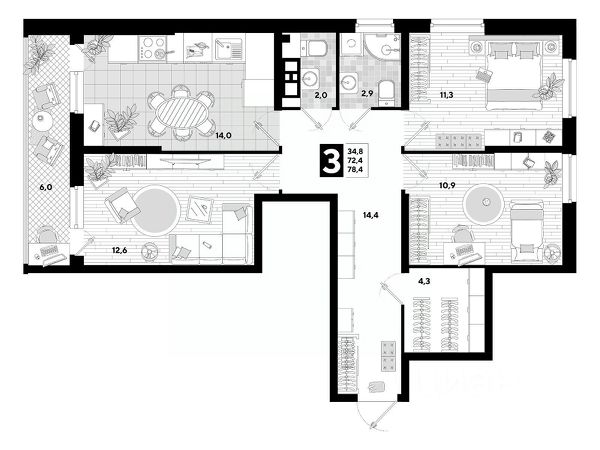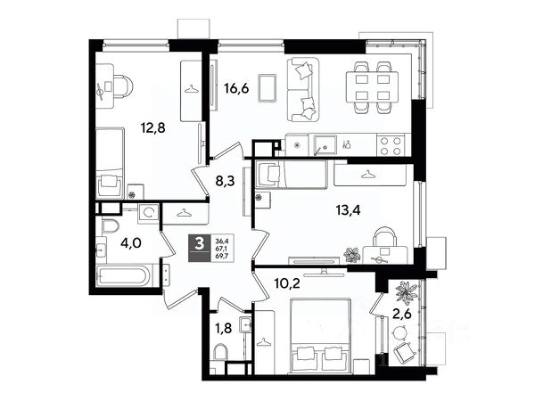 Продаётся 3-комнатная квартира от застройщика DOGMA .
