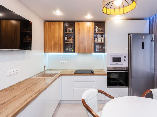 В квартире установлены 2 сплит-системы( в кухне и центральном коридоре, откуда прохладный воздух равномерно распределяется по всей площади, проведена очистка систем и заправка фреона).