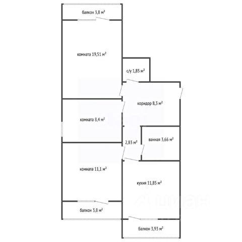 95 057 ₽/м²