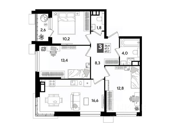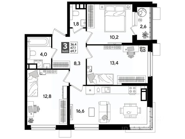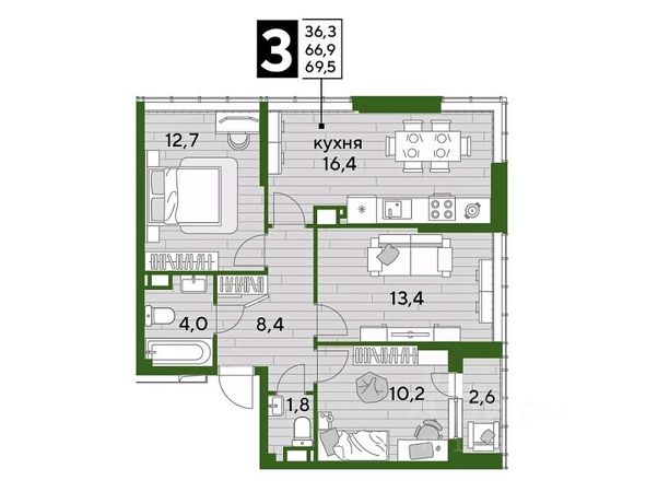В продаже 3-комнатная квартира от застройщика! Мкр. "DOGMA PARK" г. Краснодар, Литер 8 Срок сдачи: 4 кв. 2026, общей площадью 85.3 кв.м., на 9 этаже. DOGMA PARK-это новый микрорайон, сочетающий в себе стильную архитектуру современного города, и настоящий зеленый оазис, который расположится прямо во дворе. Первая очередь проекта расположена в непосредственной близости от собственного ЭКО-парка. • Собственный парк 7,3 га • Благоустройство всего МКР 5,5 Га • Безбарьерная среда • Дизайнерские лифтовые холлы • Быстрые бесшумные лифты • Подземный паркинг и кладовые • Зарядные устройства для электромобилей • Панорамные виды из квартир с витражным остеклением • Просторные дворы • Прогулочные пешеходные аллеи • Велодорожка • Воркаут-зоны • 3 школы и 5 детских садов • Современные детские площадки • Баскетбольная и универсальная спортивные площадки • Медицинская клиника • Фитнес-центр с бассейном • Торгово-развлекательный центр • Охрана на территории микрорайона Приобрести квартиру можно одним из способов: -субсидированная семейная ипотека 4,5 % на весь срок -рассрочка до конца строительства -оплата наличными -дистанционная покупка Позвоните сейчас и забронируйте квартиру со скидкой!