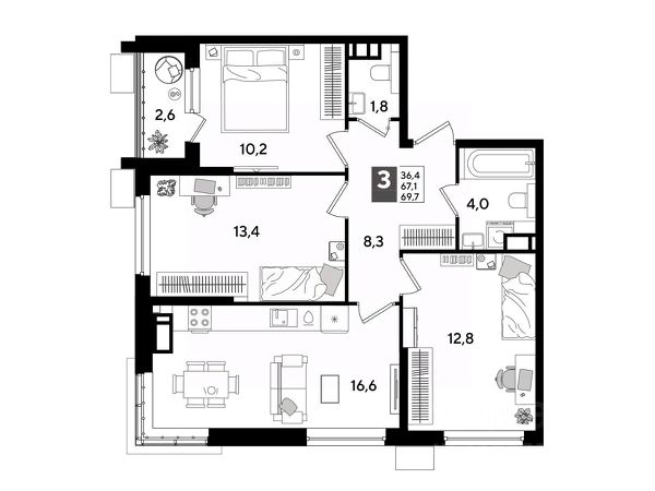 В продаже 3-комнатная квартира от застройщика! Мкр. "DOGMA PARK" г. Краснодар, Литер 1 Срок сдачи: 4 кв. 2026, общей площадью 69.7 кв.м., на 2 этаже. DOGMA PARK-это новый микрорайон, сочетающий в себе стильную архитектуру современного города, и настоящий зеленый оазис, который расположится прямо во дворе. Первая очередь проекта расположена в непосредственной близости от собственного ЭКО-парка. • Собственный парк 7,3 га • Благоустройство всего МКР 5,5 Га • Безбарьерная среда • Дизайнерские лифтовые холлы • Быстрые бесшумные лифты • Подземный паркинг и кладовые • Зарядные устройства для электромобилей • Панорамные виды из квартир с витражным остеклением • Просторные дворы • Прогулочные пешеходные аллеи • Велодорожка • Воркаут-зоны • 3 школы и 5 детских садов • Современные детские площадки • Баскетбольная и универсальная спортивные площадки • Медицинская клиника • Фитнес-центр с бассейном • Торгово-развлекательный центр • Охрана на территории микрорайона Приобрести квартиру можно одним из способов: -субсидированная семейная ипотека 4,5 % на весь срок -рассрочка до конца строительства -оплата наличными -дистанционная покупка Позвоните сейчас и забронируйте квартиру со скидкой!