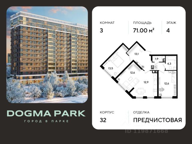 В продаже 3-комнатная квартира от застройщика! Мкр. "ДОГМА ПАРК" г. Краснодар, Литер 8 Срок сдачи: 2 кв. 2027, общей площадью 85.10 кв.м., на 11 этаже. ДОГМА ПАРК-это новый микрорайон, сочетающий в себе стильную архитектуру современного города, и настоящий зеленый оазис, который расположится прямо во дворе. Первая очередь проекта расположена в непосредственной близости от собственного ЭКО-парка. • Собственный парк 7,3 га • Благоустройство всего МКР 5,5 Га • Безбарьерная среда • Дизайнерские лифтовые холлы • Быстрые бесшумные лифты • Подземный паркинг и кладовые • Зарядные устройства для электромобилей • Панорамные виды из квартир с витражным остеклением • Просторные дворы • Прогулочные пешеходные аллеи • Велодорожка • Воркаут-зоны • 3 школы и 5 детских садов • Современные детские площадки • Баскетбольная и универсальная спортивные площадки • Медицинская клиника • Фитнес-центр с бассейном • Торгово-развлекательный центр • Охрана на территории микрорайона Приобрести квартиру можно одним из способов: -субсидированная семейная ипотека 4,5 % на весь срок -рассрочка до конца строительства -оплата наличными -дистанционная покупка Позвоните сейчас и забронируйте квартиру со скидкой!