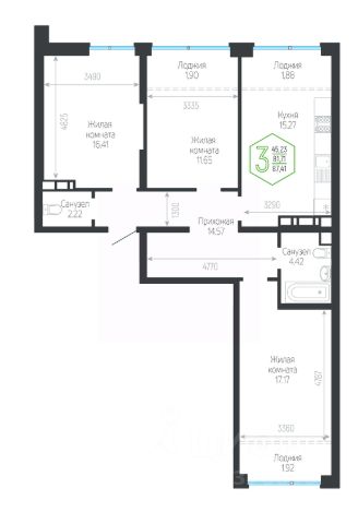 • ✓ В базе Циан 128 3-комнатных квартир в ЖК Гарантия на Обрывной в Краснодаре