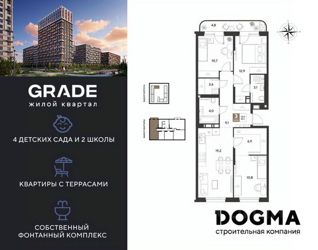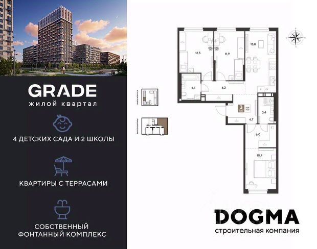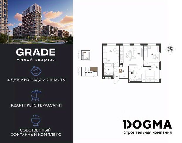 3-комнатные квартиры в жилом комплексе GRADEЖК «Грейд»