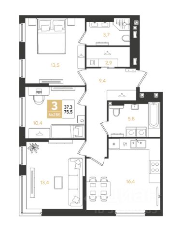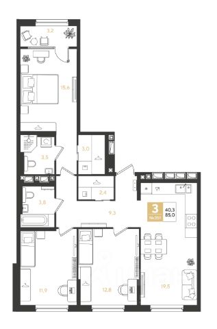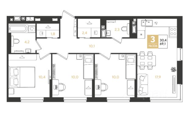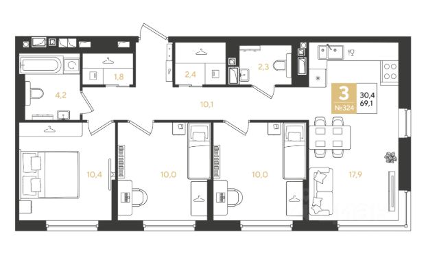 Продаётся 3-комнатная квартира в строящемся доме (Литер 2), срок сдачи: II-кв. 2028, общей площадью 69.1 кв.м., на 7 этаже. Новый жилой комплекс "Самолёт-7" от застройщика "DOGMA" расположен по адресу Краснодарский край, Город Краснодар.