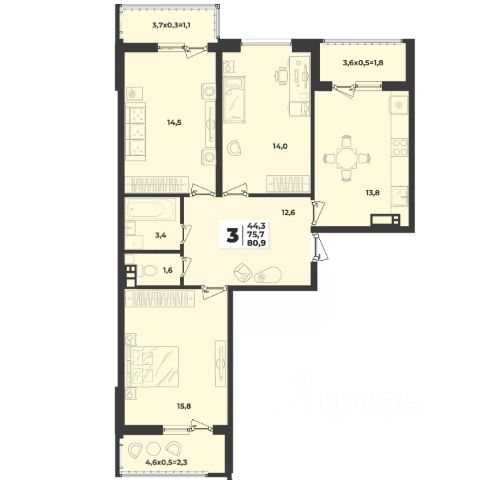 Продаётся 3-комнатная квартира в сданном доме (Литер 1.3), срок сдачи: IV-кв. 2024, общей площадью 80.9 кв.м., на 2 этаже. Новый жилой комплекс "Лето" от застройщика "ГК Дарстрой" расположен по адресу город Краснодар, улица Западный Обход.