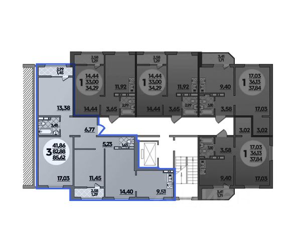 Продаётся 3-комнатная квартира в сданном доме (Литер 3), срок сдачи: II-кв. 2024, общей площадью 77.18 кв.м., на 2 этаже. РАСПОЛОЖЕНИЕ