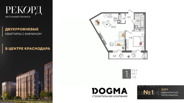 Комфорт: изолированные комнаты + кухня-гостиная.