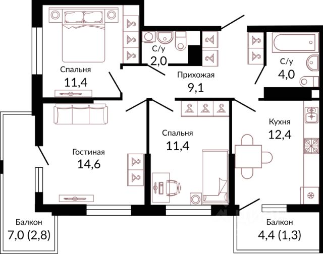 114 687 ₽/м²