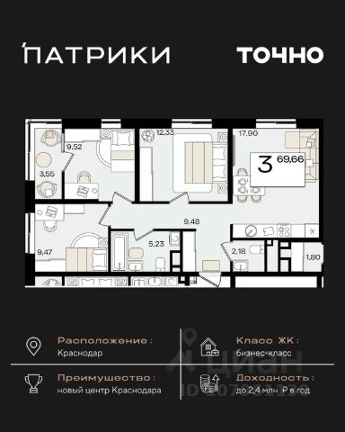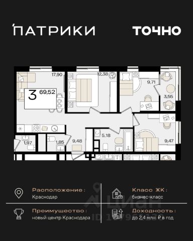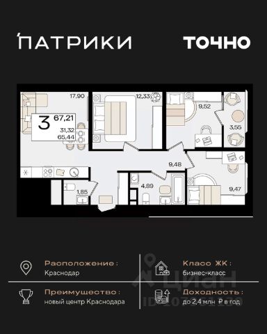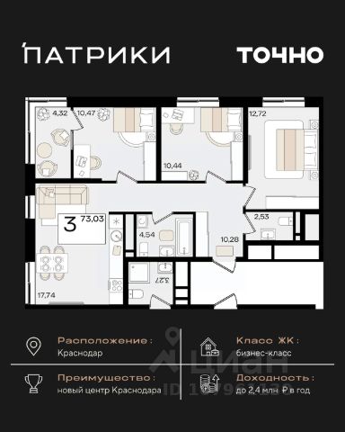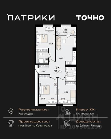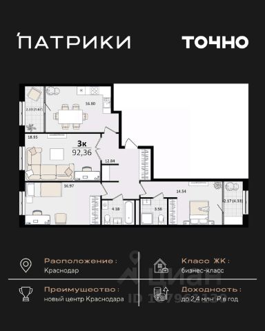 Флагманский проект группы компаний Точно - жилой комплекс бизнес-класса Патрики, это 10 домов разной этажности расположившихся на 28,5 гектарах. Жилой комплекс с концепцией город в город - прогулочные аллеи, парковая территория, 3 детских сада, 2 школы - одна из которых частная, Гранд аллея с ресторанами, фонтанами и модными бутиками, уникальные мафы и ландшафтный дизайн, создают особую атмосферу - место в котором хочется находиться. В Патриках предусмотрен и креативный кластер Цех, который включает в себя пространство для коворкинга, фудкорт, бутики, детский комплекс, лектории, фитнес-клуб Баланс с волной для сёрфа. Но и это еще не все ГК Точно уважает историю, поэтому мы сохранили 2 башни - наследство от завода "Сельмаш" исторический арт-объект назвали Мастер и Маргарита.