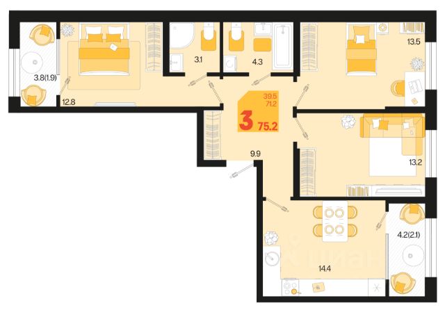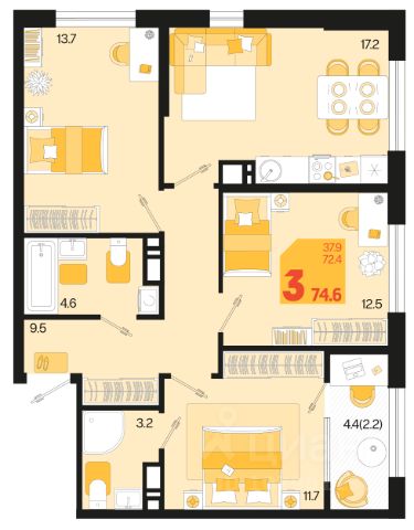 Жилой район "Первое место" — один из самых масштабных проектов в России площадью 71 га расположен в восточной части Краснодара. Комплекс включет 18 кварталов, состоящих из 31 дома переменной этажности от 8 до 18 этажей, собственный парк 9_x000D_ га, храмовый комплекс, пешеходный бульвар "Круг семьи", детские и спортивные площадки, мангальные зоны и различные локации для отдыха. В шаговой доступности действующие муниципальные образовательные учреждения: школа на 1 100 мест_x000D_ и детский сад на 250 мест. Помимо этого, в жилом районе "Первое место" появится еще одна соврменная школа на 1700 мест с крытым 25-метровым бассейном и 5 детских садов на 1 490 мест._x000D_ _x000D_ На первых этажах многоуровневых парковок "паркхабов" разместится более 61 тыс м2 коммерческих помещений. Жителям будут доступны собственный фитнес-центр, кафе, рестораны, магазины и сервисные услуги._x000D_ _x000D_ В каждом подъезде предусмотрены дизайнерские холлы в стиле лобби отелей, консьерж-сервис, лапомойки, отдельные колясочные и велосипедные. Также в домах будут просторные кладовые помещения и комнаты для хранения почты с почтоматами для получения посылок из маркетплейсов. "Первое место" — проект для жизни или инвестиций с доходом до 1,5 млн. руб. в год.*