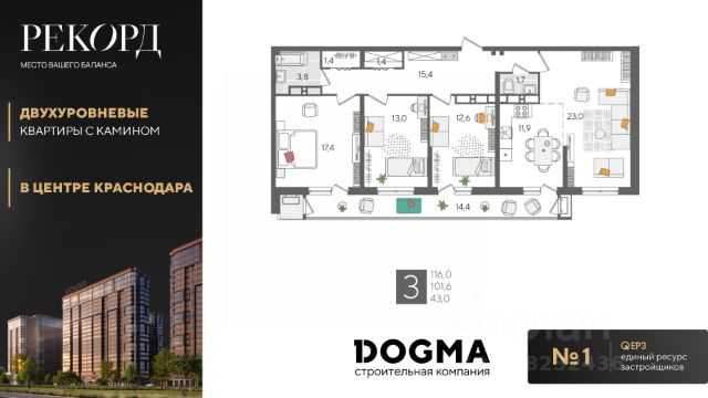 В продаже 3-комнатная квартира от застройщика! ЖК "Рекорд", г. Краснодар, Литер 2, общей площадью 98.1 кв.м., на 24 этаже. Жилой Комплекс "РЕКОРД" - место вашего баланса. Город снаружи природа внутри. Квартал с максимумом возможностей для хорошо сбалансированной жизни. Расположен в оживленном благоустроенном районе города. Сочетает в себе и жилую застройку, и торгово-деловые центры. Здесь все под рукой, здесь центр городских событий. • Уникальная локация центр города • Современная архитектура • Панорамные виды • Двухуровневые квартиры с камином и террасой • Элегантные входные группы • Архитектурная подсветка фасадов • Школа во дворе (1550 мест) • Детский сад во дворе (110 мест) • Двор без машин • Подземный паркинг и гостевые парковки • Круглосуточный пост охраны • Медицинский центр • Фитнес центр • Система "умный дом" • Баскетбольная и универсальная спортивные площадки • Современные развивающие детские игровые площадки • Ресторанный дворик с аллеей и фонтаном • Храм с уникальной архитектурой • Премиальные лифты с подсветкой и музыкой • Звукоизоляционные окна • Зарядные устройства для электромобилей • Ароматизация мест общего пользования • Элегантные входные группы • Дизайнерские лобби • Консьерж сервис • Сквозные подъезды и доступ по Face ID • Кладовки • Кондиционирование холлов • Благоустройство территории с Арт объектом • Воркаут-зоны • Зона коворкинга • Wi-fi и USB розетки на всей территории двора Приобрести квартиру можно одним из способов: -субсидированная семейная ипотека 4,5 % на весь срок -рассрочка до конца строительства -оплата наличными -дистанционная покупка Позвоните сейчас и забронируйте квартиру со скидкой! Продам 3-комнатную квартиру в ЖК Рекорд в Краснодаре.