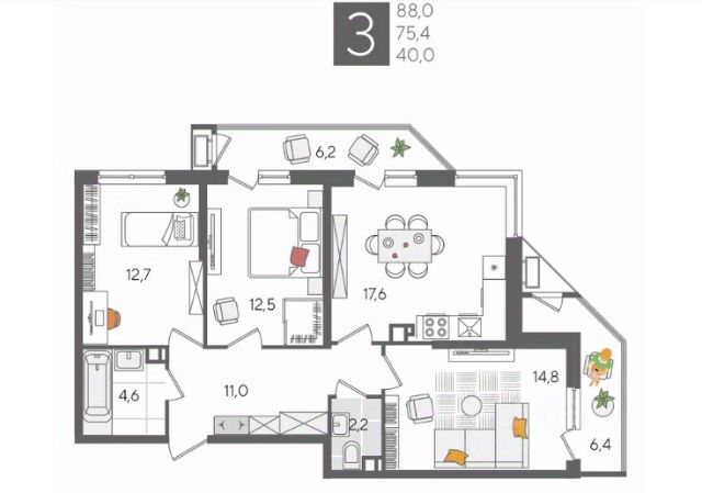 В продаже 3-комнатная квартира от застройщика! ЖК "Рекорд", г. Краснодар, Литер 2, общей площадью 88.1 кв.м., на 3 этаже. Жилой Комплекс "РЕКОРД" - место вашего баланса. Город снаружи природа внутри. Квартал с максимумом возможностей для хорошо сбалансированной жизни. Расположен в оживленном благоустроенном районе города. Сочетает в себе и жилую застройку, и торгово-деловые центры. Здесь все под рукой, здесь центр городских событий. • Уникальная локация центр города • Современная архитектура • Панорамные виды • Двухуровневые квартиры с камином и террасой • Элегантные входные группы • Архитектурная подсветка фасадов • Школа во дворе (1550 мест) • Детский сад во дворе (110 мест) • Двор без машин • Подземный паркинг и гостевые парковки • Круглосуточный пост охраны • Медицинский центр • Фитнес центр • Система "умный дом" • Баскетбольная и универсальная спортивные площадки • Современные развивающие детские игровые площадки • Ресторанный дворик с аллеей и фонтаном • Храм с уникальной архитектурой • Премиальные лифты с подсветкой и музыкой • Звукоизоляционные окна • Зарядные устройства для электромобилей • Ароматизация мест общего пользования • Элегантные входные группы • Дизайнерские лобби • Консьерж сервис • Сквозные подъезды и доступ по Face ID • Кладовки • Кондиционирование холлов • Благоустройство территории с Арт объектом • Воркаут-зоны • Зона коворкинга • Wi-fi и USB розетки на всей территории двора Приобрести квартиру можно одним из способов: -субсидированная семейная ипотека 4,5 % на весь срок -рассрочка до конца строительства -оплата наличными -дистанционная покупка Позвоните сейчас и забронируйте квартиру со скидкой! Продам 3-комнатную квартиру в ЖК Рекорд в Краснодаре.