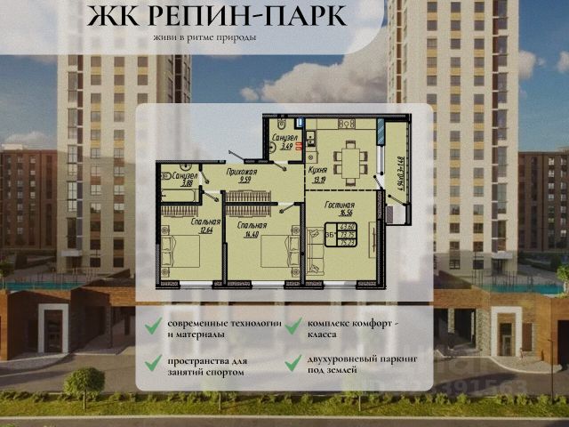 Уникальное предложение в жилом комплексе "Репин Парк"! Комплекс расположен всего в 10 минутах от центра Краснодара, в Фестивальном микрорайоне. Строгое соблюдение сроков и высокое качество строительства - главные преимущества "Репин Парк". Современные технологии и материалы обеспечивают надежность и экологичность зданий. Монолитный железобетон и трехслойные наружные стены обеспечивают прочность и сохраняют тепло. Переменная этажность комплекса от 9 до 18 этажей позволяет получить больше солнечного света для всех уровней квартир с внутренней стороны. Площадь придомовой территории будет оформлена зелеными насаждениями, создавая приватное пространство для отдыха, детских игр и семейного досуга. Во дворе также будут пространства для занятий спортом и воркаутом. Парковка будет предусмотрена на подземном уровне с двухуровневым паркингом для жителей и гостевыми машиноместами. Квартира сдается с уже завершенными черновыми работами, включая коммуникации, стяжку пола, разводку электросетей и теплоснабжения, остекление окон и балконов, установку радиаторов и входных дверей. В ЖК также предусмотрены индивидуальные кладовые помещения. Благодаря удобному расположению, жители "Репин Парк" могут наслаждаться пешей доступностью к крупным сетевым магазинам, фитнес-клубам, школам, детским садам, кафе, ресторанам и остановкам общественного транспорта. Удобная транспортная развязка обеспечивает простой доступ и избавляет от пробок. "Репин Парк" предлагает комфортное расположение, полный спектр социальных и инфраструктурных объектов, современные технологии и уютную атмосферу. Качество, комфорт и доступность - вот то, что делает "Репин Парк" особенным. Звоните нам прямо сейчас! Успейте купить свою счастливую квартиру!
