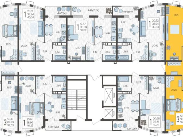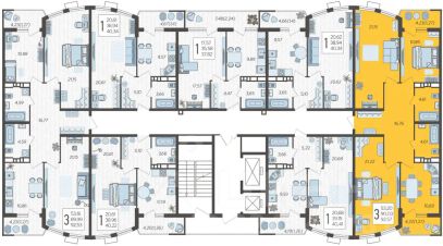 От 4-х до 7 квартир на этаже. Одно из важных преимуществ при выборе квартиры не много соседей рядом.Лифт, который спускается в подземный паркинг и больше количество парковочных мест сделает жизнь в ЖК Режиссёр еще комфортнее!