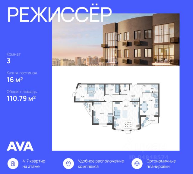 3-комнатные квартиры в жилом комплексе РежиссёрЖК «Режиссёр»