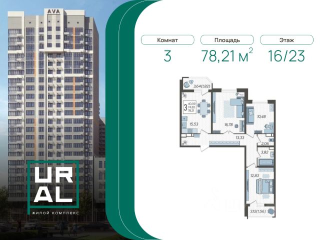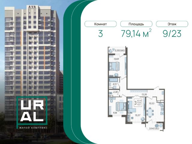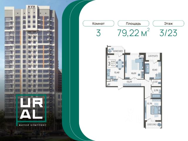 Продаётся 3-комнатная квартира в сданном доме (Дом 1), срок сдачи: I-кв. 2025, общей площадью 80.61 кв.м., на 3 этаже. Дом URAL естественным образом, за счет архитектурного решения, образует закрытую территорию. Кирпичные фасады дополняет остекление лоджий, балконов и витражи верхних этажей, где в солнечную погоду можно рассмотреть очертания гор Большого Кавказа. На территории жилого комплекса откроется фитнес-клуб и детский сад. URAL по достоинству оценят автовладельцы-двухуровневый паркинг рассчитан на 819 машиномест. Дом с характером URAL расположен на улице с похожим названием-Уральская вблизи торговых центров СБС "Мегамолл" и "Галактика", объектов социальной инфраструктуры, удобных транспортных развязок. Комфортный выезд в направлении Черноморского побережья и горнолыжных курортов даст возможность в самое короткое время добраться до трассы М4 Дон, в направлении прекрасных курортов Краснодарского края.