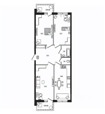 В данном комплексе представлены , без отделки, в предчистовой отделке и с ремонтом.