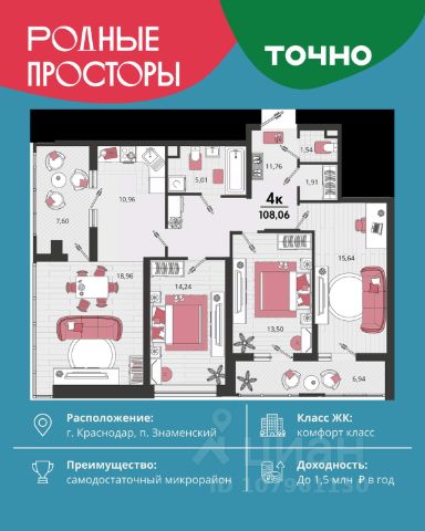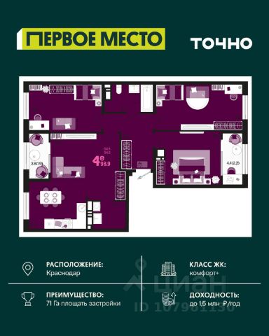 Транспортная доступность: отлично развит общественный транспорт (легко добраться в любую часть города). Удобный выезд на трассу к морю. В 10 минутах езды — крупный ТЦ Красная площадь.