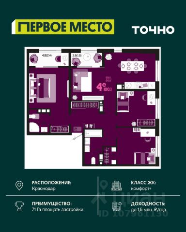 Жилой район "Первое место"- один из самых масштабных проектов в России. На территории 71 га 18 кварталов, 31 дом переменной этажности от 8 до 18 этажей, собственный парк 9 га, храмовый комплекс, пешеходный бульвар "Круг семьи", детские и спортивные площадки, мангальные зоны и различные локации для отдыха. В шаговой доступности действующие муниципальные образовательные учреждения: школа на 1 100 мест и детский сад на 250 мест. Помимо этого, в жилом районе "Первое место" построятся школа на 1700 мест с крытым 25-метровым бассейном и 5 детских садов на 1 490 мест. На первых этажах многоуровневых парковок "паркхабов" разместится более 61 тыс м2 коммерческих помещений. Жителям будут доступны собственный фитнес-центр, кафе, рестораны и магазины. В каждом подъезде предусмотрены дизайнерские холлы в стиле лобби отелей, консьерж-сервис, лапомойки, отдельные колясочные и велосипедные. Также в домах будут просторные кладовые помещения и комнаты для хранения почты с почтоматами для получения посылок из маркетплейсов.
