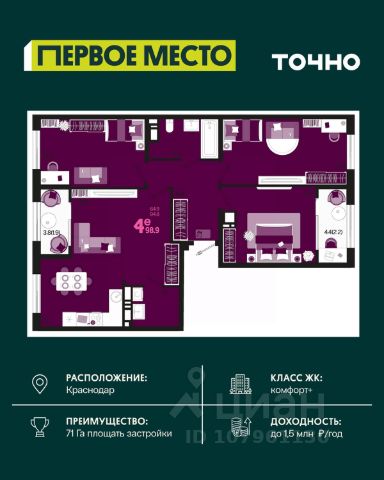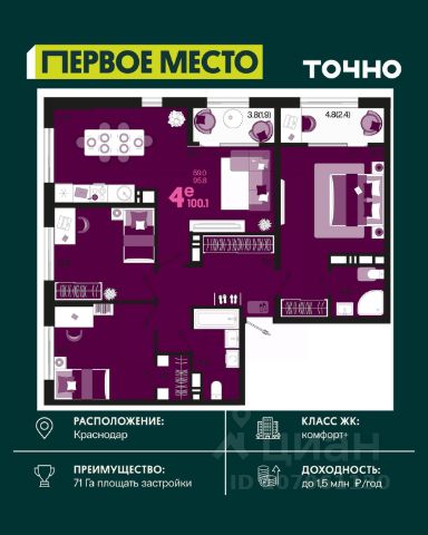 Продаётся 4-комнатная квартира в строящемся доме (Дом 3В), срок сдачи: II-кв. 2027, общей площадью 99.1 кв.м., на 3 этаже. Жилой комплекс "Барса" расположился в самом живописном Южном районе Новороссийска, всего в 15 минутах ходьбы от пляжа "Алексино". Море будет видно даже из окон невысоких этажей. Проект объединяет просторные квартиры с панорамными окнами, продуманные зоны отдыха и площадки для спорта, прогулочный бульвар, беседки и уникальные арт-объекты. В жилом комплексе запланированы детский сад на 380 мест и школа на 1 750 мест. Больше не нужно выбирать между жизнью на курорте и в мегаполисе. "Барса" — новый проект для безупречной жизни людей на побережье!