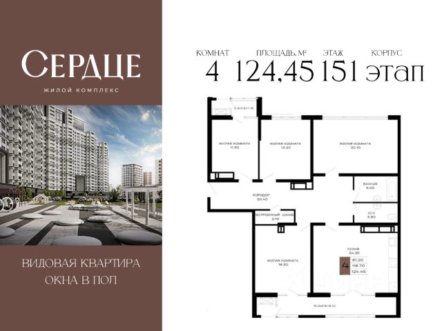 Литер 1, 15 этаж, 238. "Сердце" - это комплекс премиум-класса в самом центре Краснодара. Это проект, в котором городская динамика сочетается с комфортом, привлекательностью и продуманной средой для жизни. Здесь история города и энергия современного мегаполиса соединяются в единой архитектурной концепции. Преимущества жилого комплекса "Сердце". Транспортная доступность: 3 минуты до стадиона "Краснодар". и до парка "Краснодар". 10 минут до ТРЦ "Галерея". 10 минут до исторического центра Краснодара 10 минут. 15 минут до Кубанского государственного университета. Архитектура премиум-класса Архитектура жилого комплекса "Сердце" выполнена с выразительной геометрией и акцентом на статус. Ключевые особенности: Уникальный фасад в стиле неоклассицизма. Высококачественные материалы, гарантирующие прочность и долговечность. Равномерная вечерняя подсветка, подчеркивающая геометрию здания. Внутреннее наполнение: В парадных предусмотрены зоны ожидания с мягкими диванами и креслами, журнальными столиками. Переходные галереи, через которые можно пройти на закрытую территорию двора. Внутренняя инфраструктура 4 панорамных лифта с видом на Краснодар Консьерж-сервис Ресторан и фитнес-зал на 23 этаже Дендрарий во дворе Технологии Территория закрыта для машин Системы безопасности и круглосуточное видеонаблюдение. "Умный Дом".