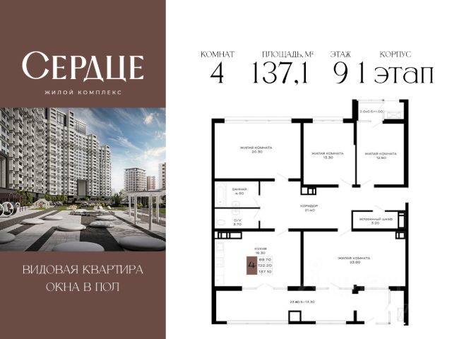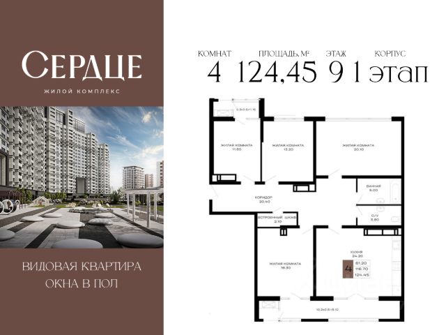 Литер 1, 9 этаж, 940. "Сердце" - это комплекс премиум-класса в самом центре Краснодара. Это проект, в котором городская динамика сочетается с комфортом, привлекательностью и продуманной средой для жизни. Здесь история города и энергия современного мегаполиса соединяются в единой архитектурной концепции. Преимущества жилого комплекса "Сердце". Транспортная доступность: 3 минуты до стадиона "Краснодар". и до парка "Краснодар". 10 минут до ТРЦ "Галерея". 10 минут до исторического центра Краснодара 10 минут. 15 минут до Кубанского государственного университета. Архитектура премиум-класса Архитектура жилого комплекса "Сердце" выполнена с выразительной геометрией и акцентом на статус. Ключевые особенности: Уникальный фасад в стиле неоклассицизма. Высококачественные материалы, гарантирующие прочность и долговечность. Равномерная вечерняя подсветка, подчеркивающая геометрию здания. Внутреннее наполнение: В парадных предусмотрены зоны ожидания с мягкими диванами и креслами, журнальными столиками. Переходные галереи, через которые можно пройти на закрытую территорию двора. Внутренняя инфраструктура 4 панорамных лифта с видом на Краснодар Консьерж-сервис Ресторан и фитнес-зал на 23 этаже Дендрарий во дворе Технологии Территория закрыта для машин Системы безопасности и круглосуточное видеонаблюдение. "Умный Дом".