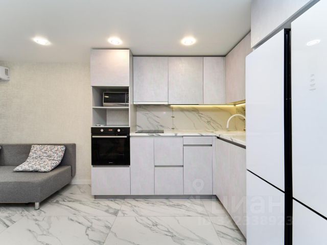 6 В кухне установлена столешница из hpl панели с мойкой нижнего монтажа раковина без бордюров