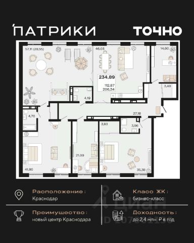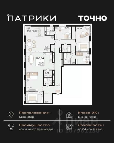 • ✓ В базе Циан 15 4-комнатных квартир в кирпично-монолитном доме в микрорайоне Хлопчато-бумажный Комбинат в городе Краснодар
