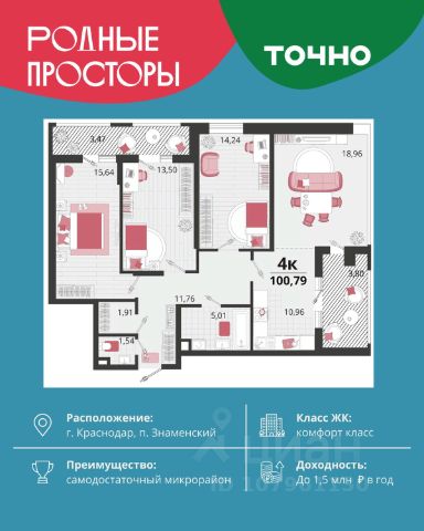 • ✓ Ищете объявления о продаже 4-комнатных квартир в микрорайоне Родные Просторы в поселке Знаменский?