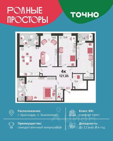 "Родные просторы"- самодостаточный микрорайон, который реализован по принципу комплексного развития территории, где есть вся инфраструктура для комфортной жизни. На территории 41 га 29 домов от 9 до 24 этажей, уютные дворы со спортивными и игровыми площадками, социальные и коммерческие объекты, зеленые массивы и фонтаны. Главная точка притяжения "Родных просторов" - парк семейного отдыха площадью 9 га, 4,5 км прогулочных аллей, амфитеатр для мероприятий, кинофестивальная площадка. Особая гордость микрорайона современная школа на 1550 мест и 3 детских сада "Ладушки", "Веснушки" и "Топотушки" на 880 малышей. В центре микрорайона строятся фитнес-клуб BALANCE с акватермальным комплексом и собственная поликлиника, площадью более 5000 кв.м. Уже открыт православный храм Святых Первоверховных апостолов Петра и Павла.