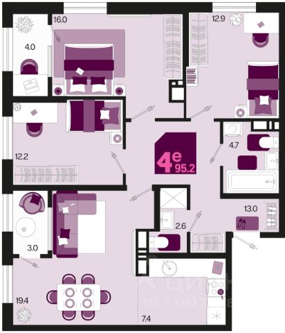 Продаётся 4-комнатная квартира в сданном доме (Дом 1 Корпус 5), срок сдачи: III-кв. 2018, общей площадью 237.4 кв.м., на 25 этаже. "Седьмой континент" это семь 25-этажных башен, построенных в центральной части Фестивального микрорайона Краснодара. Он расположен близко к центру и отличается современной архитектурой: среди пяти- и девяти-панельных домов появляются всё новые жилые комплексы, здесь же построен известный в городе коттеджный поселок "Поле чудес". Рядом находится два сквера: Видный и Майский, в пешей доступности ботанический сад им. Косенко. Вблизи комплекса останавливаются автобусы, маршрутки и троллейбусы, на которых можно доехать до автостанции, железнодорожного вокзала или любого района Краснодара.