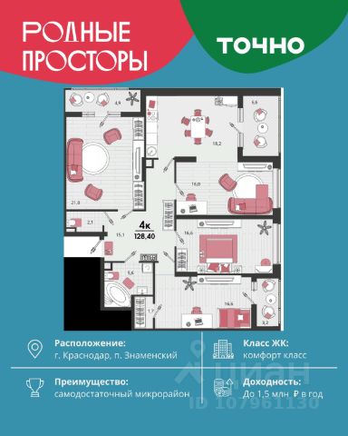 Полная площадь с лоджиями 136,8 кв. м.