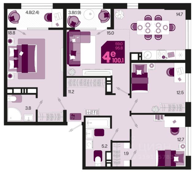 Продаётся 4-комнатная квартира в сданном доме (Дом 1 Корпус 5), срок сдачи: III-кв. 2018, общей площадью 237.4 кв.м., на 25 этаже. "Седьмой континент" это семь 25-этажных башен, построенных в центральной части Фестивального микрорайона Краснодара. Он расположен близко к центру и отличается современной архитектурой: среди пяти- и девяти-панельных домов появляются всё новые жилые комплексы, здесь же построен известный в городе коттеджный поселок "Поле чудес". Рядом находится два сквера: Видный и Майский, в пешей доступности ботанический сад им. Косенко. Вблизи комплекса останавливаются автобусы, маршрутки и троллейбусы, на которых можно доехать до автостанции, железнодорожного вокзала или любого района Краснодара.
