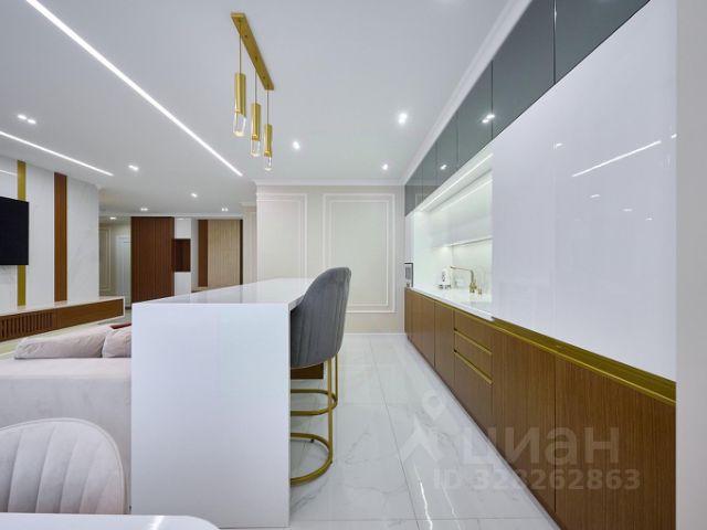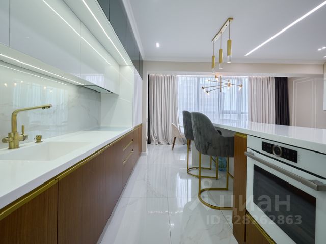 Шикарная 4 комнатная квартира общей площадью 152 м.кв. с индивидуальным планировочным решением, что позволит устроить Вашу жизнь максимально комфортно! В квартире выполнен дизайнерский ремонт в стиле современной классике. Имеются три просторные спальни, 2 гардеробные, уютная кухня-столовая, гостиная, две лоджии, два сан.узла, сауна (элитные сорта дерева и ультрасовременная электрическая печь).
