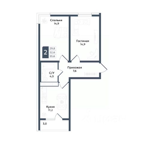 Очень удобная и функциональная планировка: три изолированных спальни, просторная гостиная с выходом на застекленный балкон, входная зона, гардеробная, кухня, раздельный сан. узел.