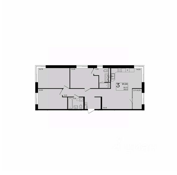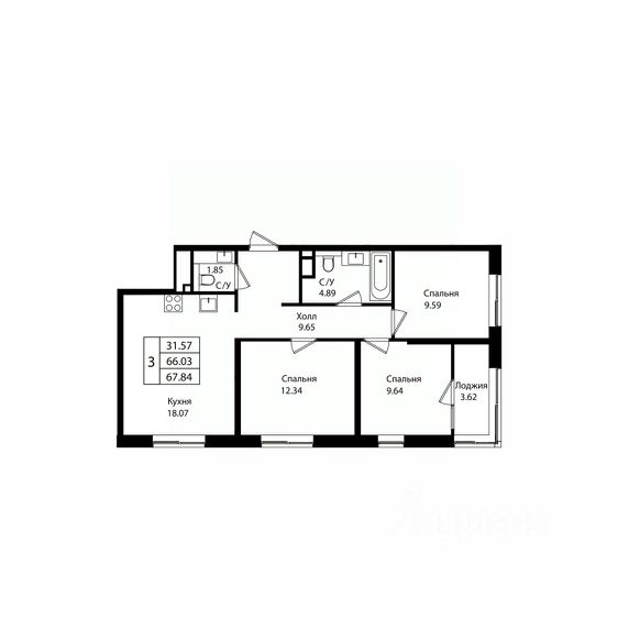 - *Возможность сделать 3 спальни* — например, перенесите стену или используйте часть гостиной как третью комнату
