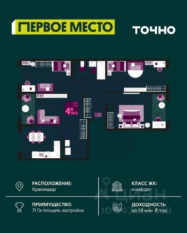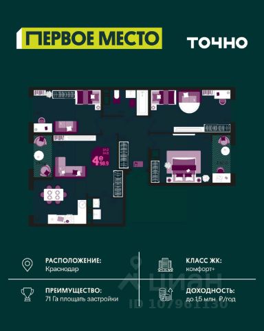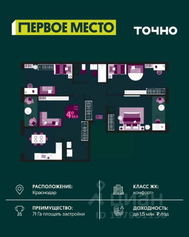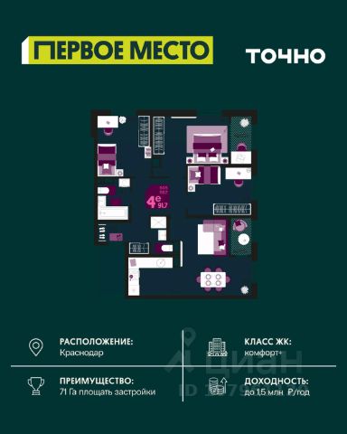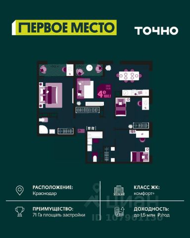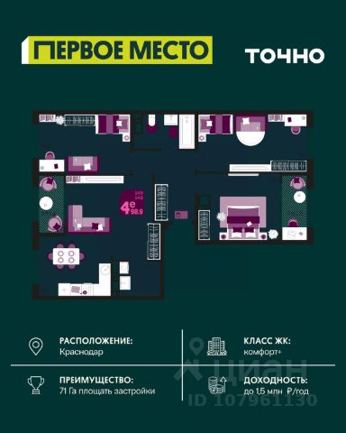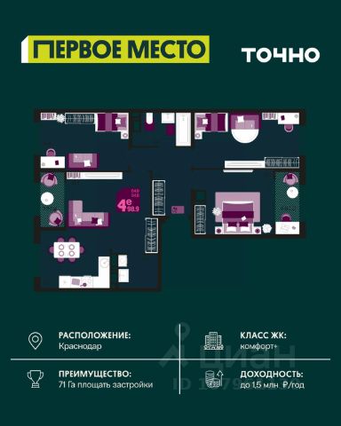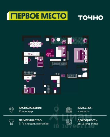 Жилой район "Первое место"- один из самых масштабных проектов в России. На территории 71 га 18 кварталов, 31 дом переменной этажности от 8 до 18 этажей, собственный парк 9 га, храмовый комплекс, пешеходный бульвар "Круг семьи", детские и спортивные площадки, мангальные зоны и различные локации для отдыха. В шаговой доступности действующие муниципальные образовательные учреждения: школа на 1 100 мест и детский сад на 250 мест. Помимо этого, в жилом районе "Первое место" построятся школа на 1700 мест с крытым 25-метровым бассейном и 5 детских садов на 1 490 мест. На первых этажах многоуровневых парковок "паркхабов" разместится более 61 тыс м2 коммерческих помещений. Жителям будут доступны собственный фитнес-центр, кафе, рестораны и магазины. В каждом подъезде предусмотрены дизайнерские холлы в стиле лобби отелей, консьерж-сервис, лапомойки, отдельные колясочные и велосипедные. Также в домах будут просторные кладовые помещения и комнаты для хранения почты с почтоматами для получения посылок из маркетплейсов.