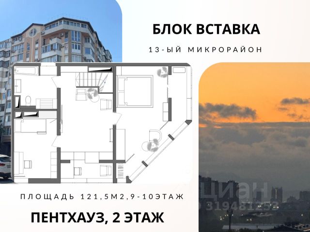 Просторная двухэтажная квартира располагается на 7-8 верхних этажах дома (пентхаус) Лифт в подьезде Торцевая, без соседей, вид на три стороны: на море, на горы и на город Отличные видовые характеристики, закаты на море великолепны Общая площадь 194м2 1этаж Площадь 86м2 Просторный входной холл, кухня-гостинная с зонированием и двумя панорамными окнами, на северную сторону, летом нет изнуряющей жары и палящего солнца, спальня с выходом на балкон, санузел совмещен и имеет окно На второй этаж ведёт монолит/бетон лестница отделанная лиственницей 2этаж Площадь 86м2+22м2 кладовки Две спальни, гардеробная, постирочная, санузел с окном, холл с видом на море В каждом помещении мансардные окна Высота потолков 2 этажа 2,4 В квартире сделан качественный ремонт. Вся кухонная техника немецкой фирмы Kuppersberg, 5 кондиционеров, окна REHAU Невысокие коммунальные платежи 1850+счётчики Мебель и техника остаётся и входит в стоимость квартиры Развитая инфраструктура, напротив дома Политехнический университет, магазины, кафе, остановка общественного транспорта До моря, пляж Альбатрос, 20 минут неспешным шагом Квартиру делали для себя, качественно. Приезжайте смотреть и покупайте! Реелтров прошу не беспокоить, скажите спасибо своим коллегам 5-комнатная квартира (вторичка) от собственника в Краснодарском крае.