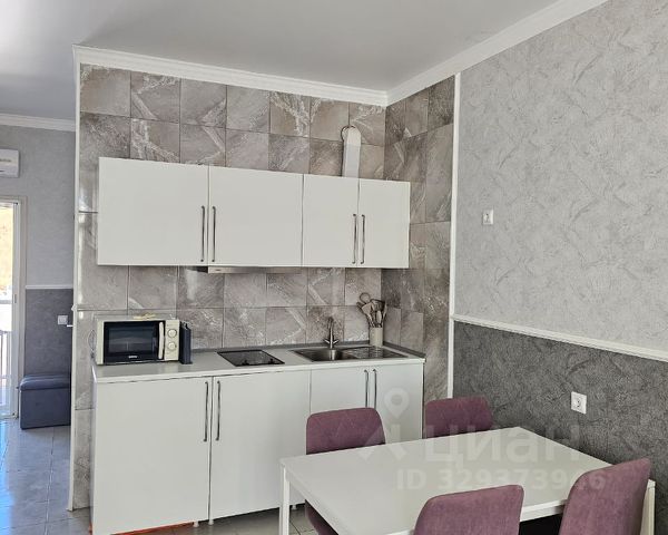 Просторное спальное место, уютная зона отдыха-рабочий стол, пуфик, шкаф для одежды, телевизор. Кухня-ниша, чайник, холодильник, микроволновая печь. Набор посуды на 2 персоны: десертные тарелки, плоские тарелки 28 см, суповые тарелки, столовые приборы, чайные пары, нож, вилки, ложки, разделочная доска, шкаф зеркало, полотенцесушитель (все останется в подарок реальному покупателю). Совмещенный с/у. Балкон с красивым видом), кондиционер и Wi-Fi.