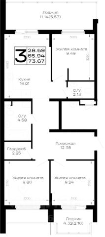 + Продуманная и удобная планировка: 103м2: кухня-гостиная + 3 спальни+ гостиная.