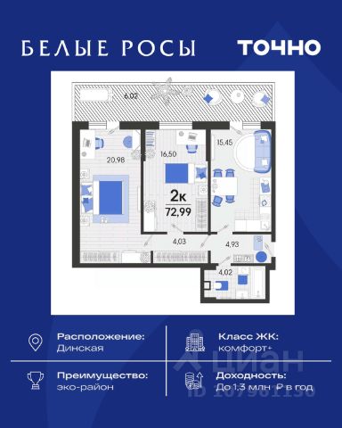Проект включает в себя 4 корпуса в едином архитектурном стиле. Дома спроектированы в классическом европейском стиле с использованием светло-бежевого кирпича в облицовке фасадов. Входные группы каждого дома оборудованы остекленными дверьми витражного типа с чиповыми замками и домофоном. На всей территории комплекса разработана безбарьерная среда. Также все подъезды оборудованы автоматическими подъемниками для людей с ограниченными возможностями. В ЖК предложено множество планировочных решений: в наличии квартиры, как классического типа, так и европланировки. Они сдаются с подчистовой отделкой и высотой потолков 2,75 - 3 метра. На территории комплекса находится детский сад. На первых этажах корпусов предусмотрены коммерческие помещения. Дворы благоустроены: организованы прогулочные аллеи, свободные от машин, установлены детские и спортивные площадки. ЖК возводится в станице Динская. На маршрутке или автобусе можно быстро добраться в центр станицы или в Краснодар. Дорога до центральной части Динской займет около 10 минут, там можно провести время в кинотеатре или торговом центре, купить продукты на фермерском рынке, погулять с ребенком в детском парке.