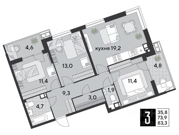 В продаже 3-комнатная квартира от застройщика! ЖК "Парк Победы 2", г. Краснодар, Литер 29 Срок сдачи: 1 кв. 2026, общей площадью 82.9 кв.м., на 10 этаже. Концептуально новый микрорайон "ПАРК ПОБЕДЫ" - это статная архитектура, вдохновленная наследием страны. Уникальное культурное пространство в стиле сталинского ампира, который отличает монументальность, классические пропорции и четкость линий. •Безбарьерная среда •Сквозные подъезды •Авторские лобби •Видовые квартиры с панорамным остеклением •Квартиры с мастер-спальнями и отдельными гардеробными •Потолки 3 метра •Улучшенная отделка от застройщика •Подземный паркинг и кладовые •Дворы без машин с видеонаблюдением •Круглосуточный пост охраны •Школа для 1 550 учеников •4 детских сада •Уличные тренажёры, зоны для пинг-понга и йоги •Крытый боксёрский ринг •Собственный пешеходный бульвар •Прогулочные аллеи с фонтаном •Коммерческие помещения на первых этажах Приобрести квартиру можно одним из способов: -субсидированная семейная ипотека 4,5 % на весь срок -рассрочка до конца строительства -оплата наличными -дистанционная покупка Позвоните сейчас и забронируйте квартиру со скидкой!