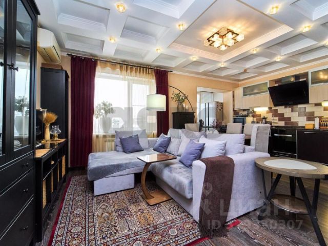 Кухня изготовлена из высококачественных материалов и укомплектована дорогой фурнитурой, а вместительный холодильник и диван, выполненный на заказ, добавляют комфорта. Гардеробная комната оснащена встроенными шкафами. Вся мебель и техника, представленные на фото, остаются новым владельцам.