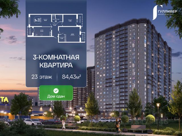 Просторная 3-комнатная квартира в ЖК "Гулливер" — продуманное решение для семьи, где есть место для каждого и всё создано для комфортной жизни. Такой формат идеально подходит для семей с детьми или тех, кто ценит пространство, удобство и функциональность. О квартире: 1 Полноценная 3-комнатная планировка — удобно для жизни всей семьи; 2 Изолированные комнаты — личное пространство для каждого; 3 Просторная кухня — можно реализовать формат кухни-гостиной; 4 Панорамные окна — больше света и ощущение объема; 5 Продуманная прихожая — место под хранение; 6 Возможность гибко организовать пространство под ваши задачи. Площадь: 90.3 м² Этаж: 23 Вид из окон: на ул. Российская и во двор Акции и бонусы: — Семейная ипотека 3,5% на весь срок. — Платеж от 26 942 ₽/мес. — Квартиры от 99 000 ₽/м² (ограниченное количество). О нас: Мы — "Екатеринодар Инвест Строй". Создаем современные жилые комплексы, где важны не только квадратные метры, но и качество жизни. — Используем проверенные технологии строительства; — Работаем с качественными материалами; — Продумываем каждый элемент — от фасадов до дворов; — Формируем комфортную и безопасную среду для жителей. Среда проживания: ЖК "Гулливер" — это не просто дом, а полноценное пространство для жизни в городе. Закрытая территория для жителей; Двор без машин — безопасно и спокойно; Двухуровневое решение: паркинг + благоустроенный двор; Озеленение, зоны отдыха и прогулочные маршруты; Детские площадки и спортивные зоны; Коммерция на первых этажах — всё рядом с домом. Качество строительства: — Монолитно-кирпичная технология; — Центральные коммуникации; — Установлены надежные радиаторы отопления; — Индивидуальные приборы учета; — Современные инженерные решения. Расположение: Улица Российская — удобная транспортная артерия; До центра города — около 15 минут; Быстрый доступ в любые районы; Рядом трамвайная линия. Все для жизни рядом: — Детские сады и школы поблизости; — Учебные заведения; — Поликлиники и медицинские центры; — Гипермаркет "Лента" в 50 м.; — Парки и зоны отдыха. Оставьте заявку или напишите нам — подберем планировку, рассчитаем ипотеку и предложим лучшие условия. Точные расчеты производятся на примере конкретных квартир и зависят от банковских программ. Информацию о ценах и наличии уточняйте у нашего отдела продаж. *Рендеры носят иллюстративный характер и демонстрируют возможный вариант оформления квартиры, не являясь ремонтом от застройщика.