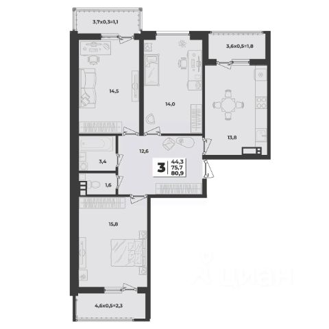 • ✓ В базе Циан 26 больших квартир на улице Имени Генерала Корнилова в городе Краснодар