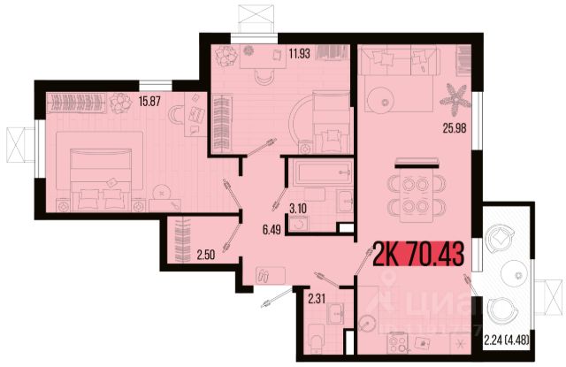 • ✅ Минимальная площадь: 70,1 м²
